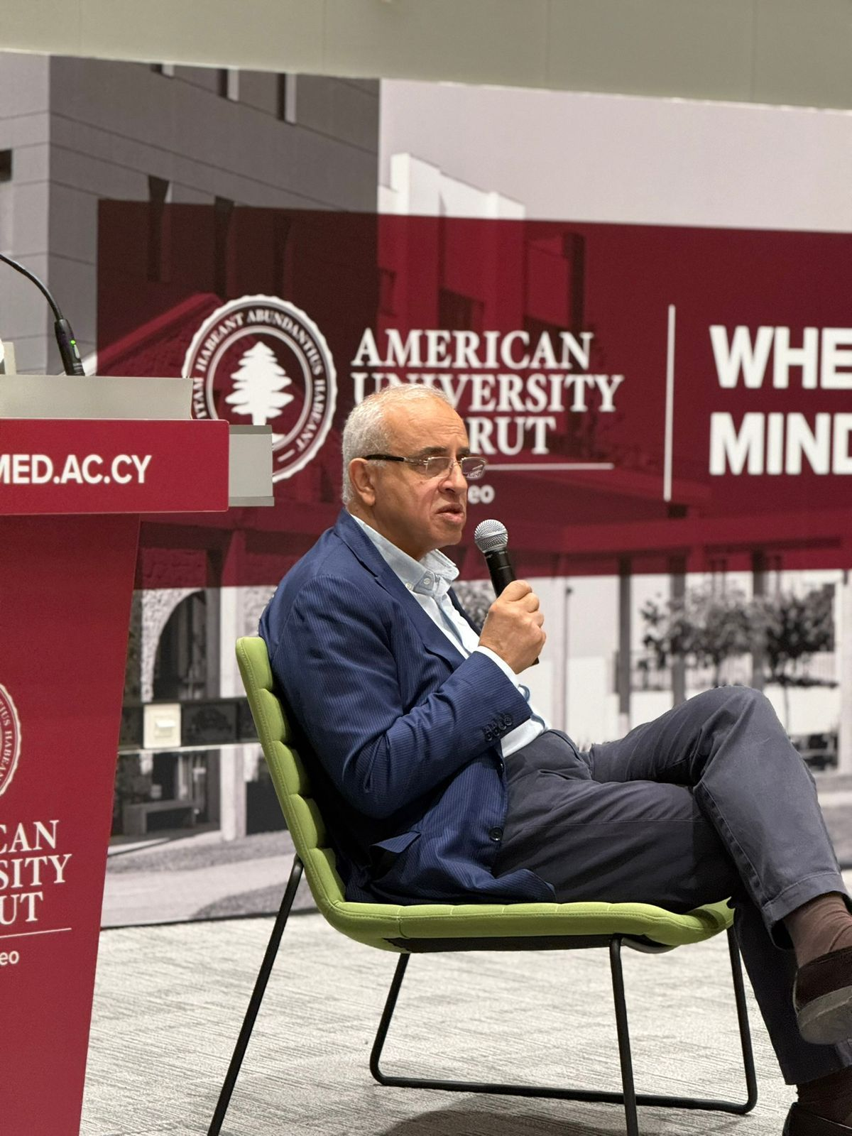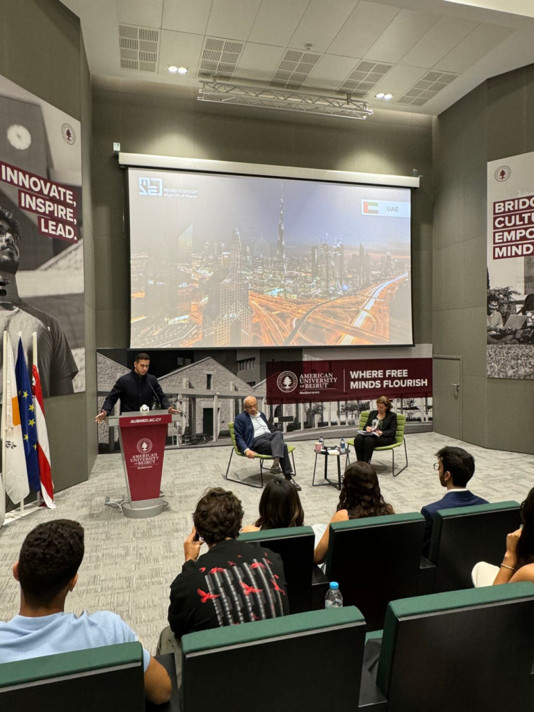 في يوم الجمعة الموافق 14 نوفمبر 2025، استضافت الجامعة الأميركية في بيروت – حرم البحر الأبيض المتوسط ندوة قيادية ملهمة بعنوان «ما بعد القيادة: القصة، والاستراتيجية، والمستقبل». وقد نُظّمت الندوة من قبل طلبة كلية إدارة الأعمال تحت إشراف الدكتورة إلينا ب. أنطوناكوبولو، وبمشاركة المتحدث الرئيسي السيد فارس عورتاني، رئيس مجلس الإدارة والرئيس التنفيذي لـ مجموعة موزيكو.